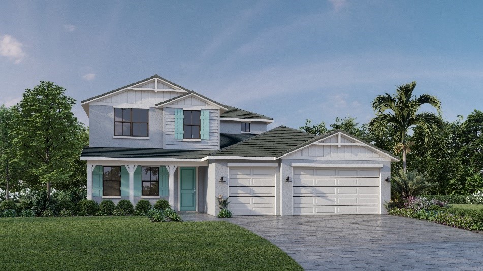 The Sollas model features coastal architecture and a versatile floor plan starting at 2,236 square feet under air with three bedrooms, two full baths and a powder room. A dedicated storage area in the two-car garage provides an option for converting the flex room to a fourth bedroom with a walk-in closet and private bathroom.